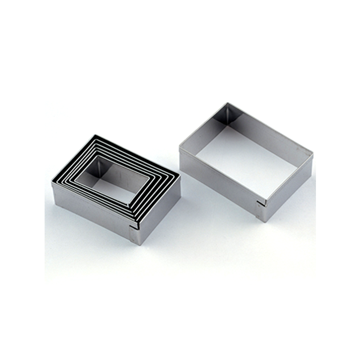 Метални кутери в формата правоъгълник. Този продукт е прекрасен инструмент за всеки сладкар. Изработен е от висококачествена материал, който може да контактува с храни. С помощта на кутера може да създадете страхотна декорация за вашите сладки изделия или да приготвите бисквитки в различни и атрактивни форми.