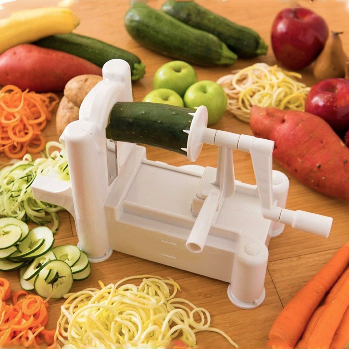Създавайте произведения на изкуството за вечеря с помощта на този три-в-едно спирализатор. С трите различни приставки за ножове можете да създавате къдрави картофи, ленти от краставици, резени и ленти от ябълки и много други. Придайте изкусителна текстура на плодовете и зеленчуците във вашите ястия и специалитети.